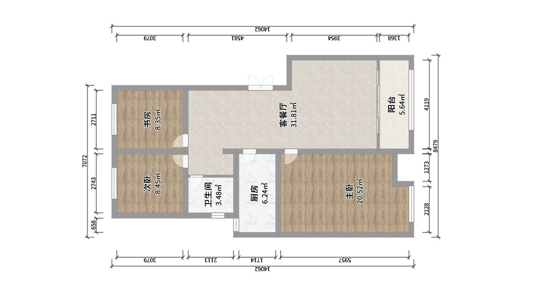 中海藍(lán)庭106㎡三室兩廳戶型平米布局圖