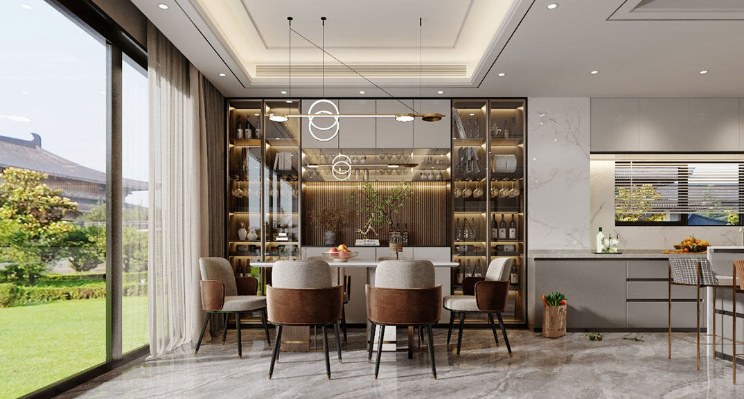 青島小鎮(zhèn)175㎡別墅下疊餐廳輕奢極簡(jiǎn)風(fēng)格裝修案例效果圖