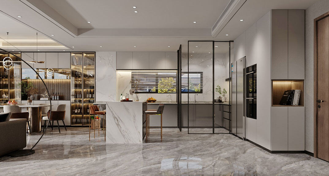 青島小鎮(zhèn)175㎡別墅下疊廚房輕奢極簡(jiǎn)風(fēng)格裝修案例效果圖