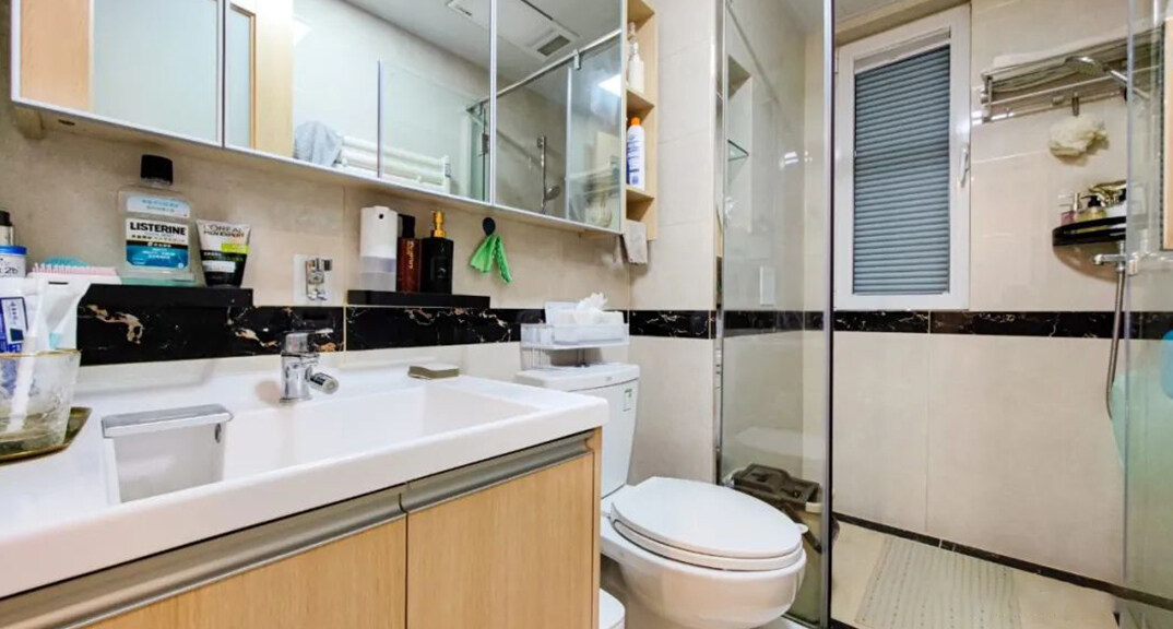 卓越皇后道90㎡三室兩廳衛(wèi)生間輕奢極簡風格裝修實景效果圖