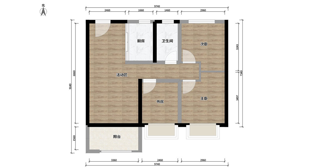 卓越皇后道90㎡三室兩廳戶型平面布局圖