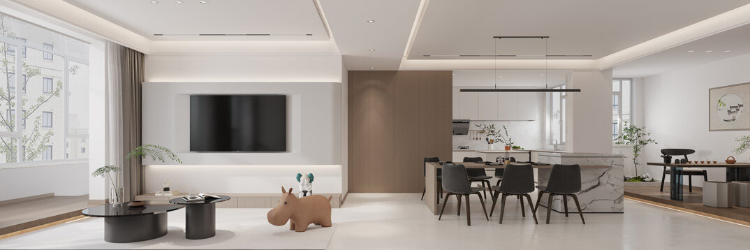 東岸世家167㎡三室兩廳客餐廳現(xiàn)代極簡風(fēng)格裝修案例效果圖