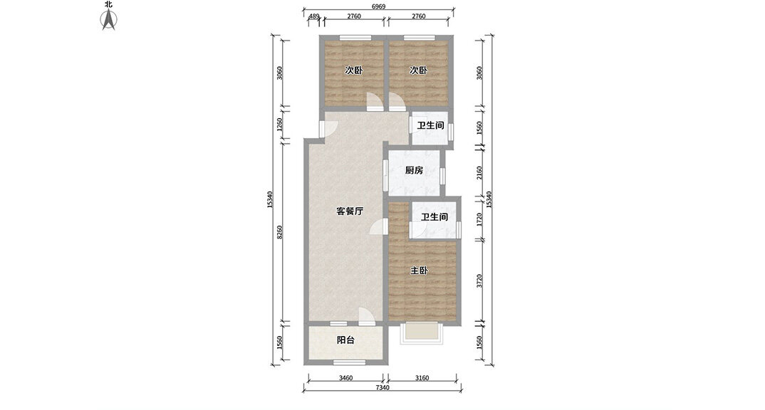 遠洋萬和公館122㎡三室兩廳戶型平面布局圖