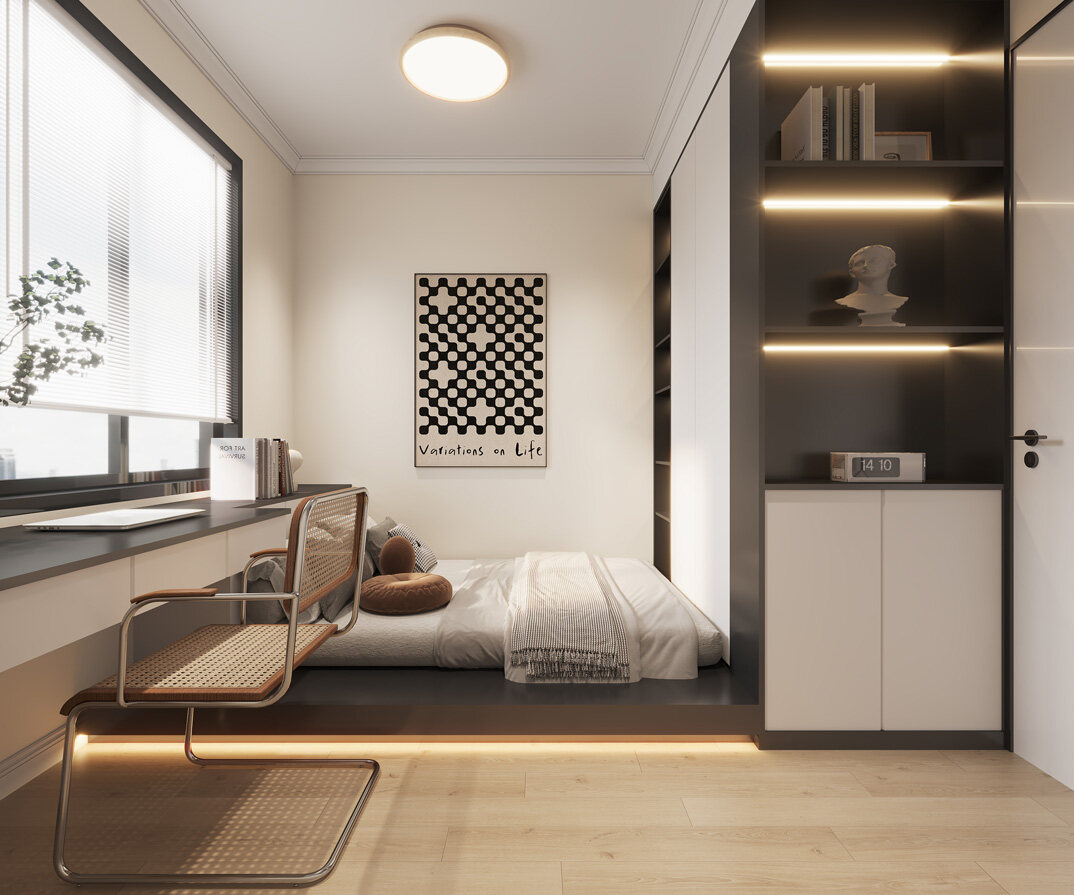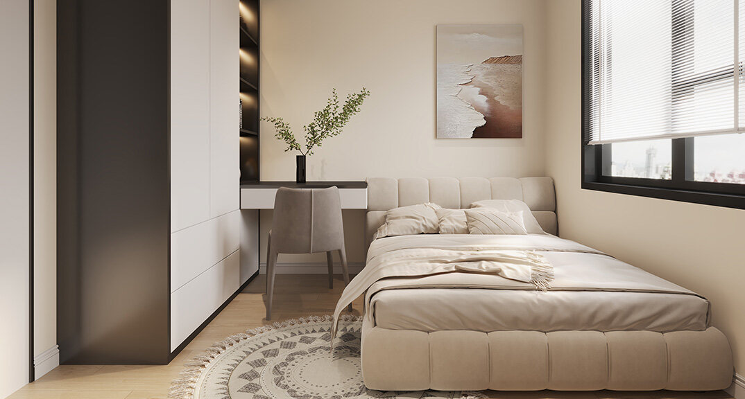 遠洋萬和公館122㎡三室兩廳次臥現(xiàn)代風格裝修案例效果圖