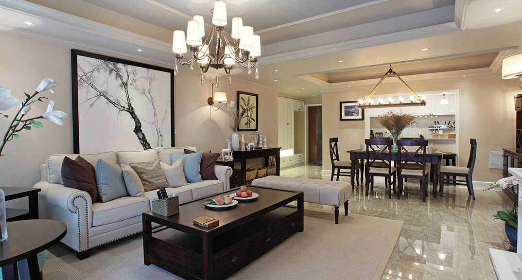 檀府300㎡別墅客廳現(xiàn)代美式風格裝修案例效果圖