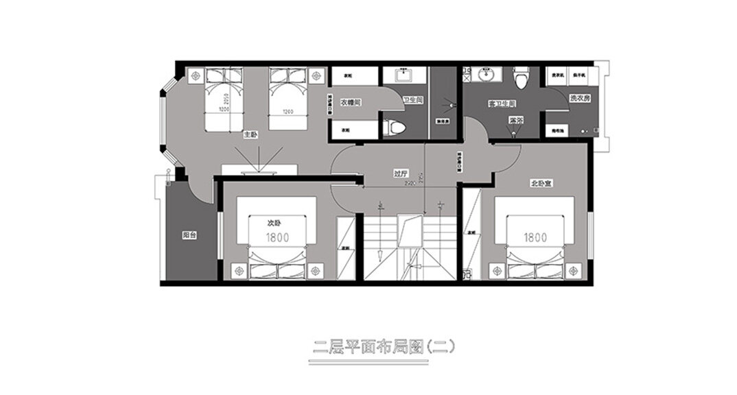泰和郡338㎡聯(lián)排別墅二層戶型平面布局圖