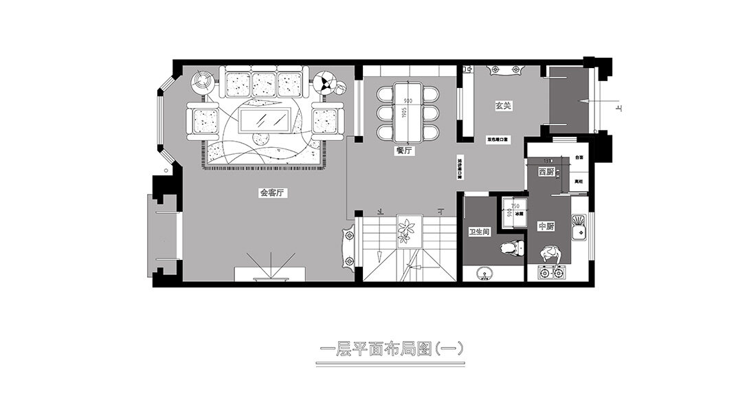 泰和郡338㎡聯(lián)排別墅一層戶型平面布局圖