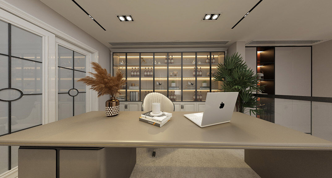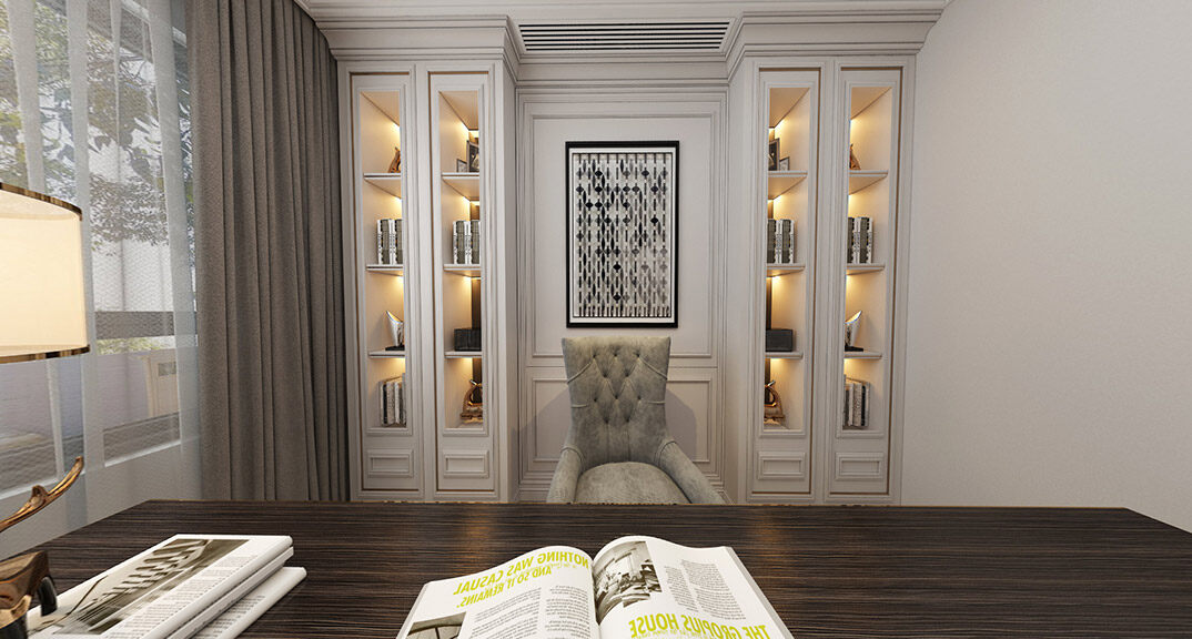 九里風(fēng)華478㎡別墅二樓書(shū)房法式風(fēng)格裝修案例效果圖
