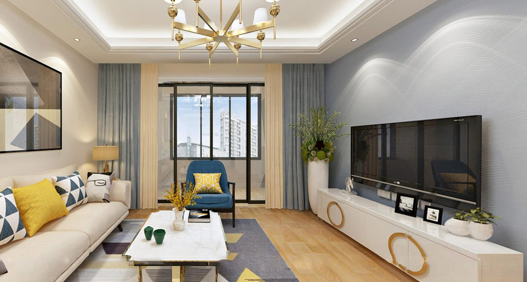 浮來(lái)春公館142㎡四室兩廳客廳現(xiàn)代簡(jiǎn)約風(fēng)格裝修案例效果圖