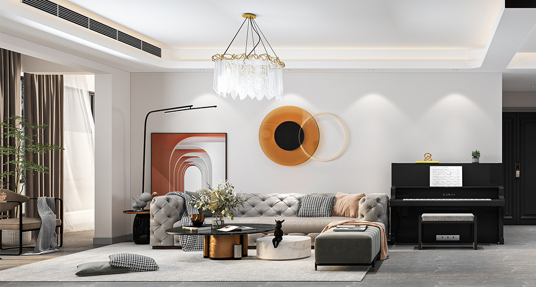 安泰悅湖灣140㎡四室兩廳客餐廳沙發(fā)現(xiàn)代風(fēng)格裝修案例效果圖
