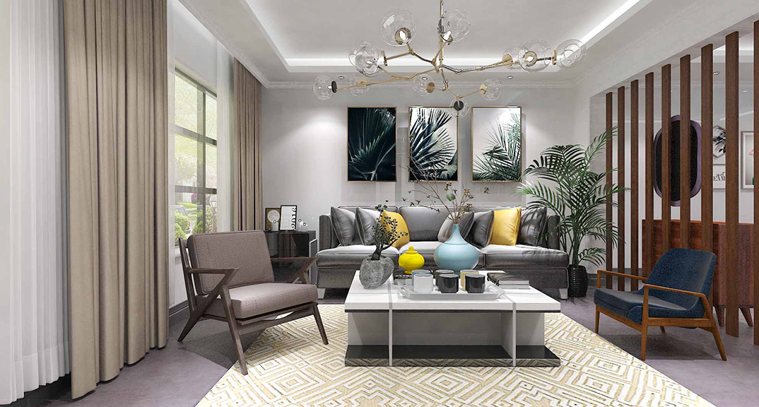 安泰名筑260㎡四室兩廳客廳沙發(fā)新中式風(fēng)格裝修案例效果圖