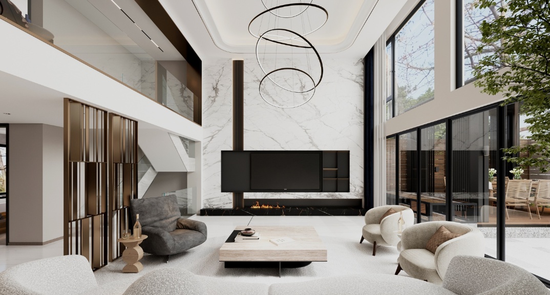 青島別墅裝修-保利紅島灣裝修-現(xiàn)代輕奢風格-青島東方家園裝飾