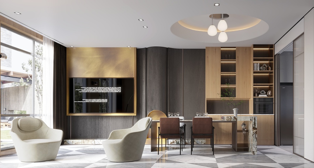 整體設(shè)計(jì)以深灰色、黑色為主色調(diào),搭配木飾面、原木地板和金屬裝飾,營造沉穩(wěn)內(nèi)斂的現(xiàn)代風(fēng)格。同時(shí),注重空間的功能性和實(shí)用性,滿足業(yè)主及父母日常生活和休閑娛樂需求,打造舒適便捷、低調(diào)奢華的理想居所。