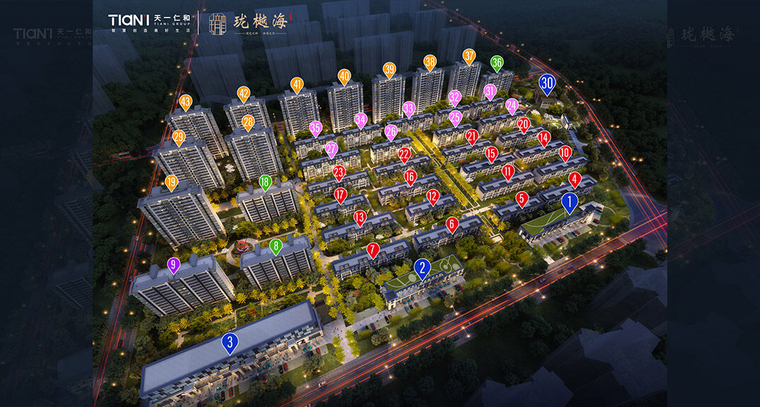 海天一仁和瓏樾海位于膠州灣與女姑山之間,南側(cè)600米即為3.8公里海邊木棧道??芍^是瓏樾依山著,云霞出瀚海。整個(gè)小區(qū)共有43棟樓,產(chǎn)品涵蓋裝修小高層、裝修洋房、疊拼別墅等三類產(chǎn)品。項(xiàng)目總共占地面積10.4萬平,建筑面積15.7萬平,容積率僅為1.5。整個(gè)小區(qū)采用了行列式建筑排布,形成“負(fù)陰抱陽”的建筑排布。小區(qū)分為八大園區(qū),分別為海園,瓏園,臻園,樾園,璽園,鶯園,儒園以及前園。每個(gè)組團(tuán)都有專屬的景觀軸線,使得整個(gè)小區(qū)能夠做到春有花、夏有蔭、秋有果、冬有綠、一步一景,步移景異的園林效果,業(yè)主可享受全方位的景觀資源。
